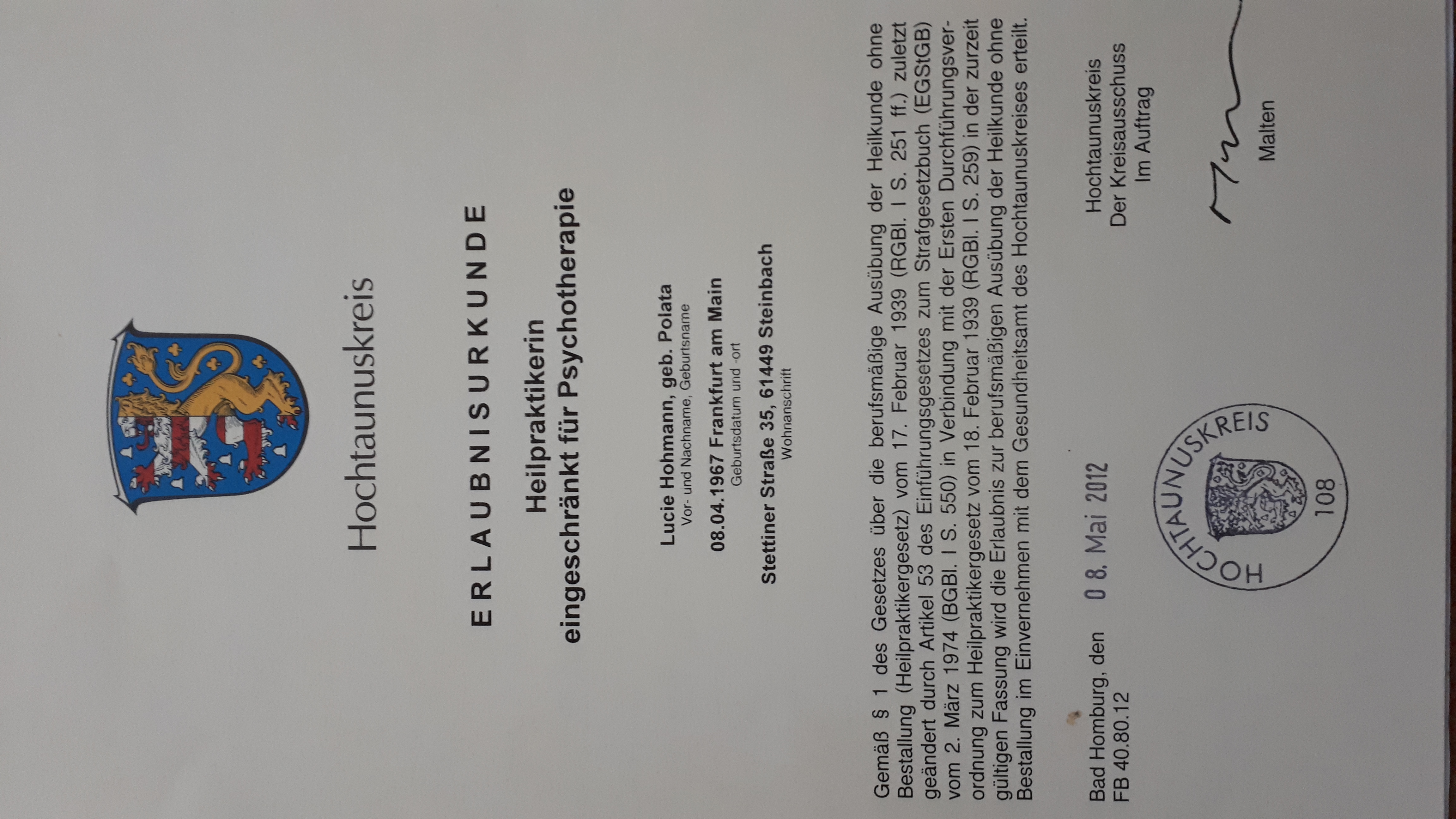 - Erlaubnis der Psychotherapie nach dem Heilpraktikergesetz